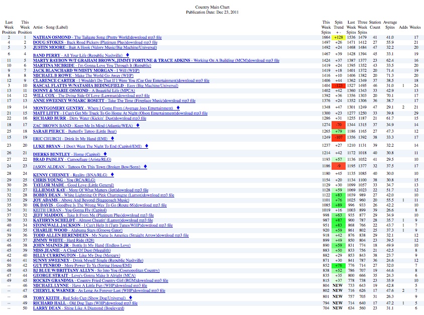 Nathan Osmond’s new single, “The Tailgate Song” just hit #1 on both New Music Weekly’s Major and Indie charts TODAY!!! He is also currently #1 on Indie World Country’s chart for the 2nd week in a row. That makes Nathan Osmond #1 on THREE Country charts in the same week!!!